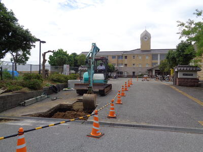 ① 広域避難所用のマンホールトイレの敷設工事 7月24日~8月27日