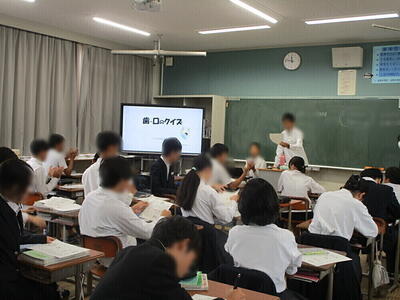 10月22日、健康タイムとして朝の会で歯に関するクイズを行いました。歯磨き強化週間を設けて、歯を大切にする取り組みをしています。