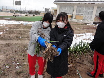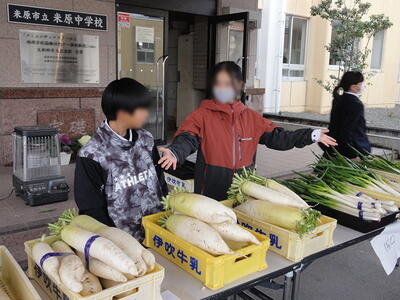 ねぎ、大根、かぶ、新米の販売 投稿: 米原中学校 (10:26) 1月28日米中農園で収穫したねぎ、大根、かぶ、新米の販売を行いました。 たくさんの方に購入していただき、大盛況でした。来校された方には、大根炊き、パパイヤ茶を振る舞い、こちらも大変喜んでいただきました。ご協力ありがとうございました。